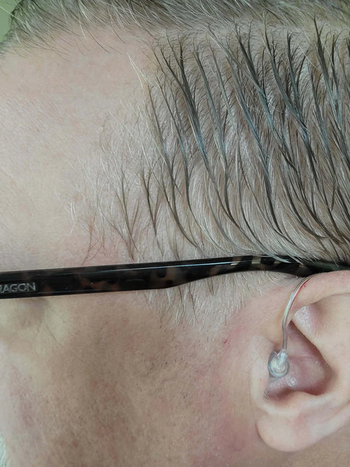 Obwohl unsere Hörgeräte ein Hinter-dem-Ohr-Design (HdO) verwenden, liegen sie sehr nah am Kopf an.